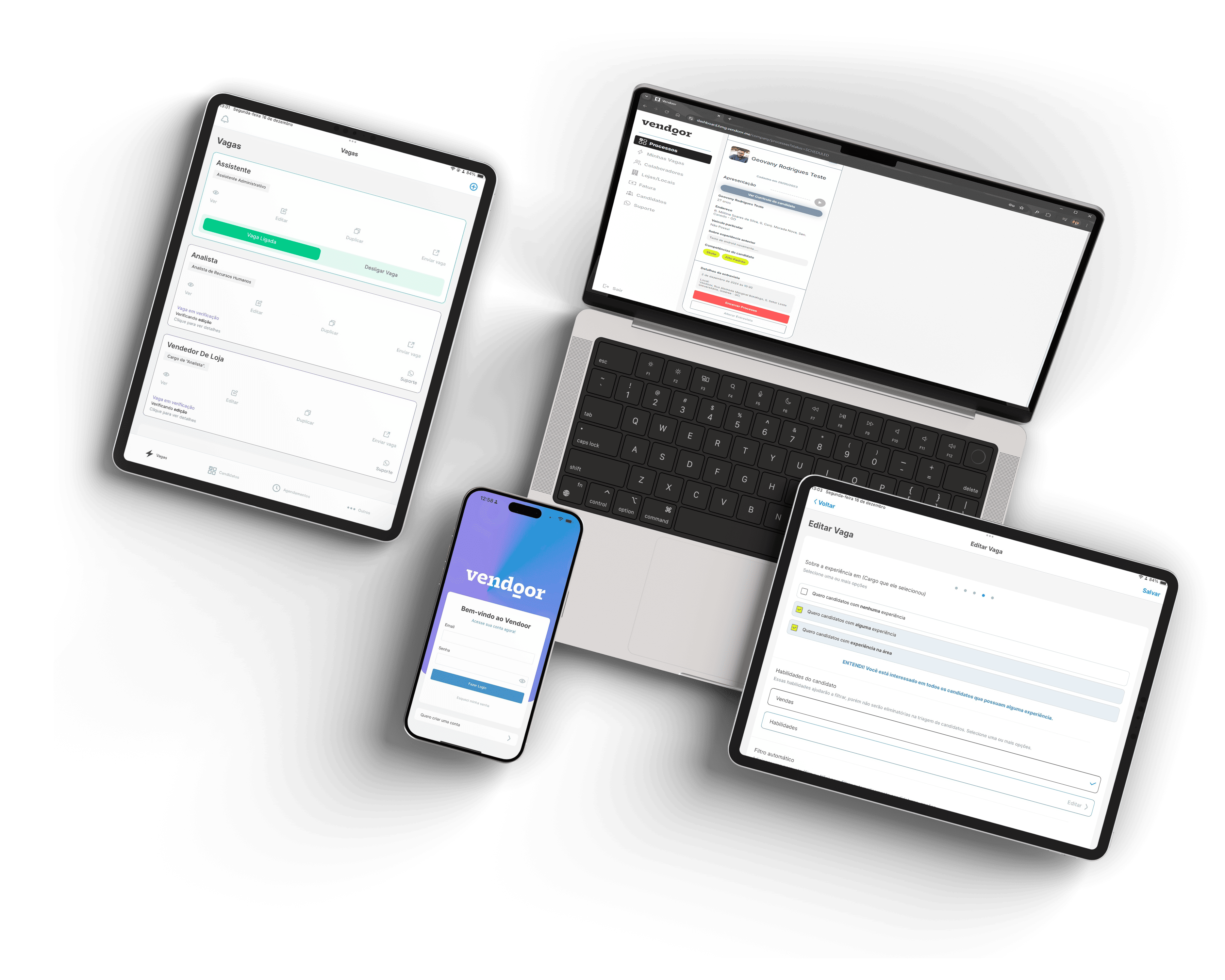 Suas vagas são trabalhadas por profissionais de rh da vendoor. Nossos hunter buscam e triam os candidatos além da IA.